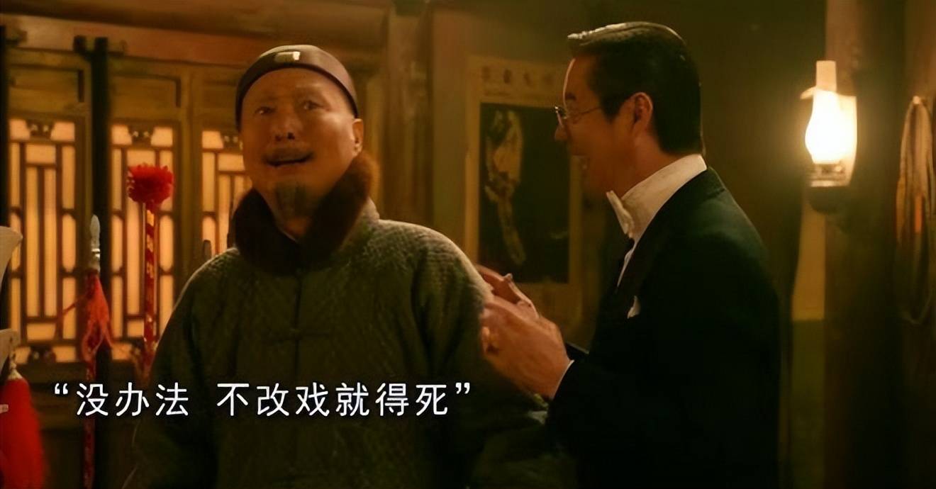 电影版相较于话剧,加了一笔神来之笔,当戏班班主侯玉山,那个舞台上的“活霸王”,在后台听见权贵们肆意羞辱整个戏班,骂他们是“下九流的玩意儿”时,他心里的火能烧穿天。