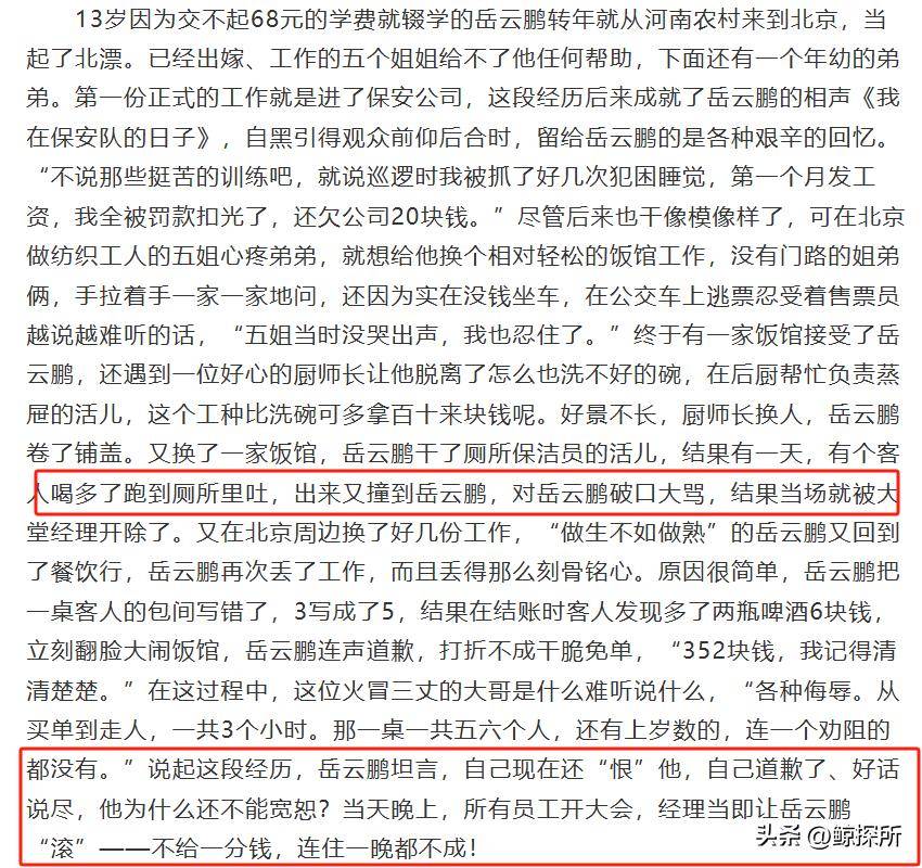最后,岳云鹏又失去了这份工作,经理甚至一分钱都没给他,还是当着所有员工的面让他滚的。