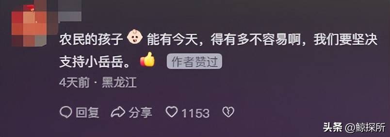还有人说,农民的孩子,能有今天,那得有多么的不容易啊,坚决支持小岳岳。