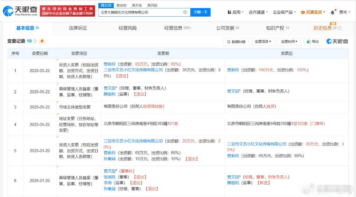随着时间的推移,贾玲开始逐步淡出娱乐圈的公众视野。2024年9月,她辞去了大碗娱乐的职务,公司宣布将不再负责她的艺人事务。2025年5月,公司的工商变更,贾玲持股比例上升至100%,成为全资控股人,并将法人变更为她的父亲。尽管外界普遍认为她已彻底退出娱乐圈,但实际上,贾玲早已走向了另一条康庄大道。