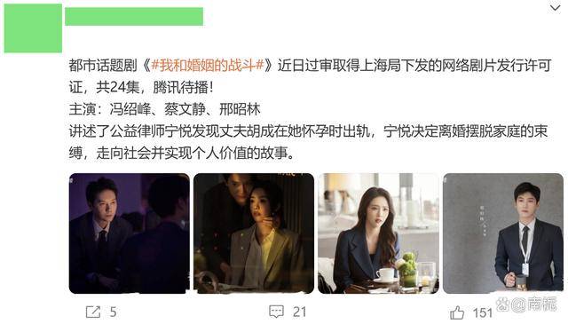 《我和婚姻的战斗》已获得网络剧片发行许可证,并将在鹅厂上线,相信不久之后便会与观众见面。