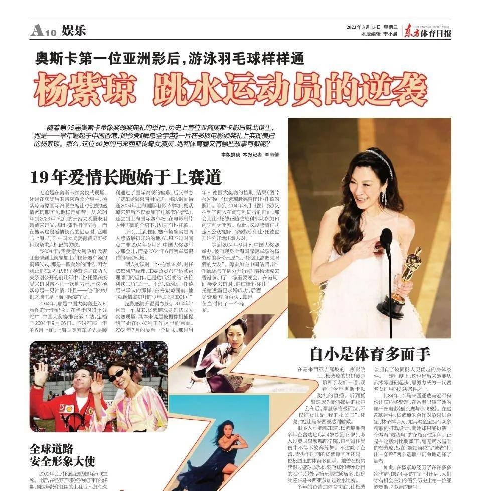 表面上看,杨紫琼来颁奖并无不妥。她除了是国际知名影星,去年9月还成为了国际奥委会委员。而且杨紫琼出身富裕家庭,小时候主攻体育,在壁球、跳水领域有不小的成就,曾代表马来西亚参加跳水比赛,后来受伤才转到影视圈发展。