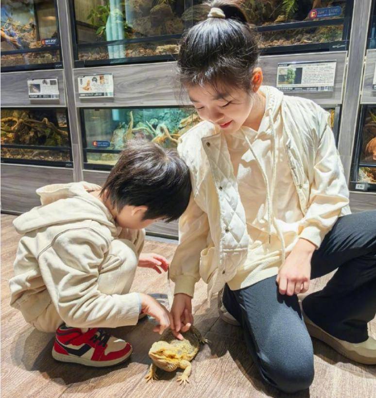 毕竟,对大多数小朋友来说,蛇和蜥蜴是需要敬而远之的动物,但他们俩却像是在照顾小猫小狗一样,自然而然地互动。