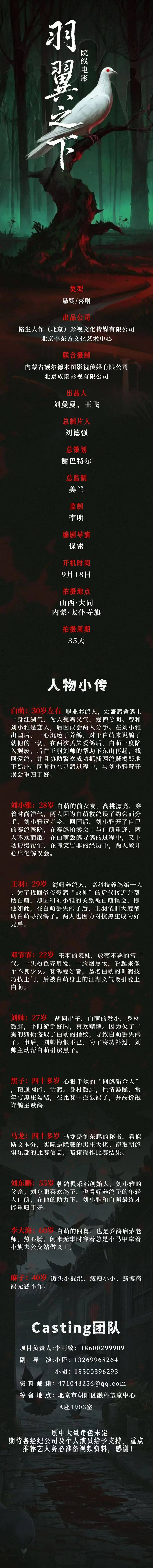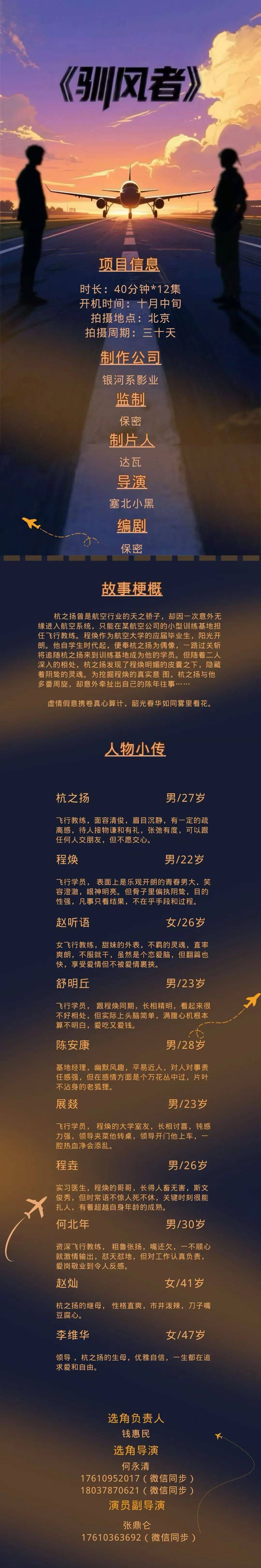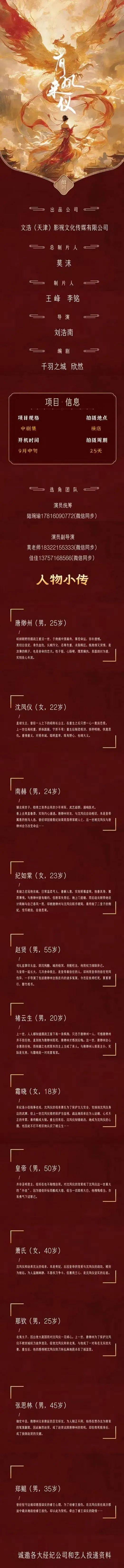选角联系人:马帅、魏军杰