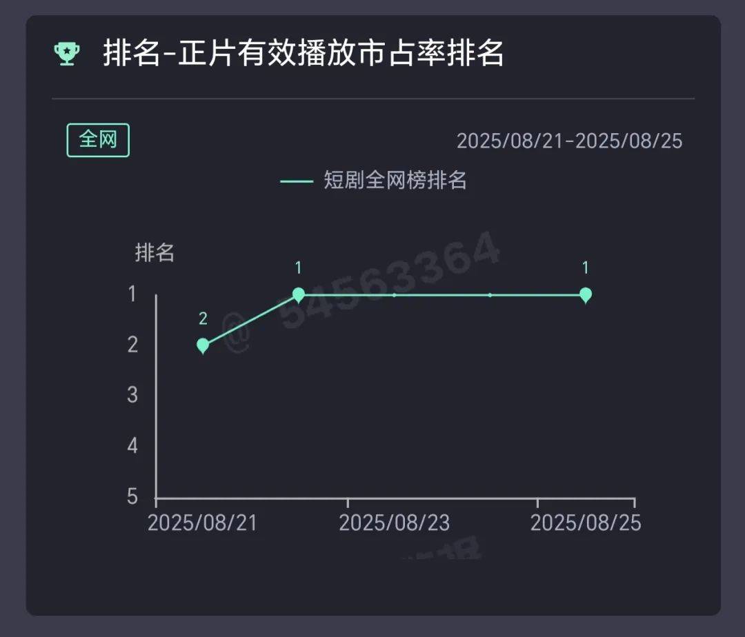 靠着演员粉丝和悬疑剧爱好者,《搏忆》连续多日蝉联猫眼短剧热度榜日冠。根据云合数据显示,《搏忆》的正片有效播放市占率排名短剧全网榜第一。