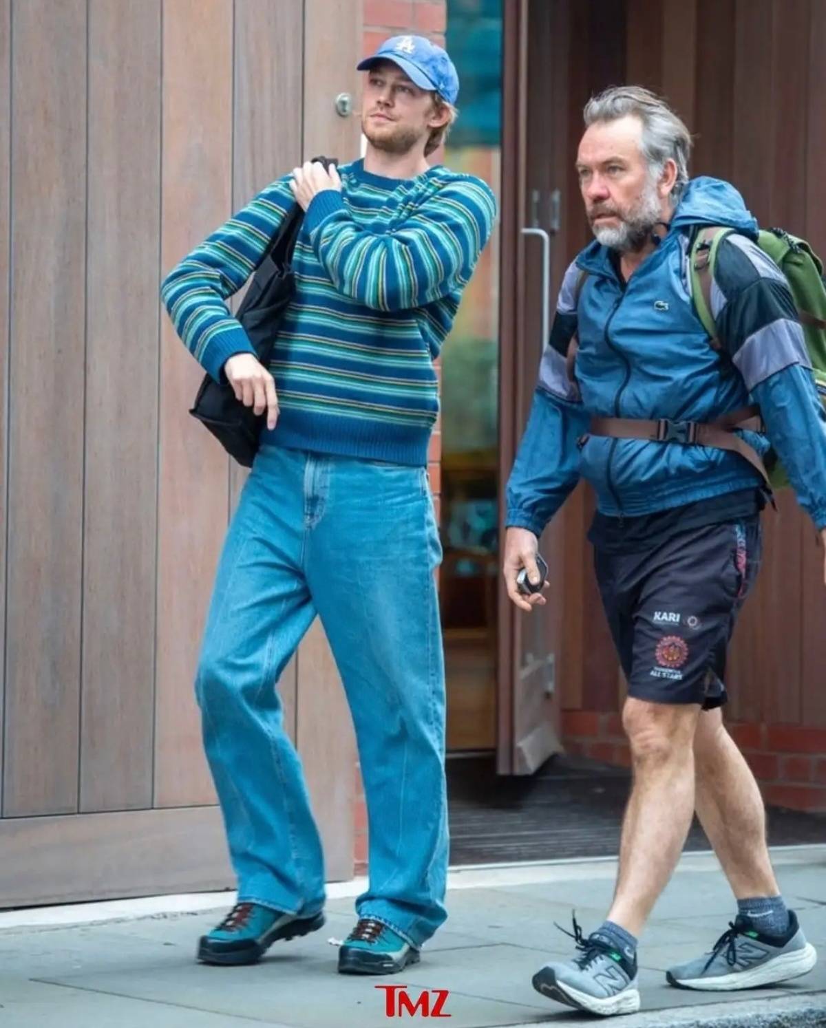 搜狐娱乐讯 8月28日,霉霉前男友Joe Alwyn的一组照片流出,图中,他穿着蓝色条纹上衣搭配牛仔裤与蓝色棒球帽。