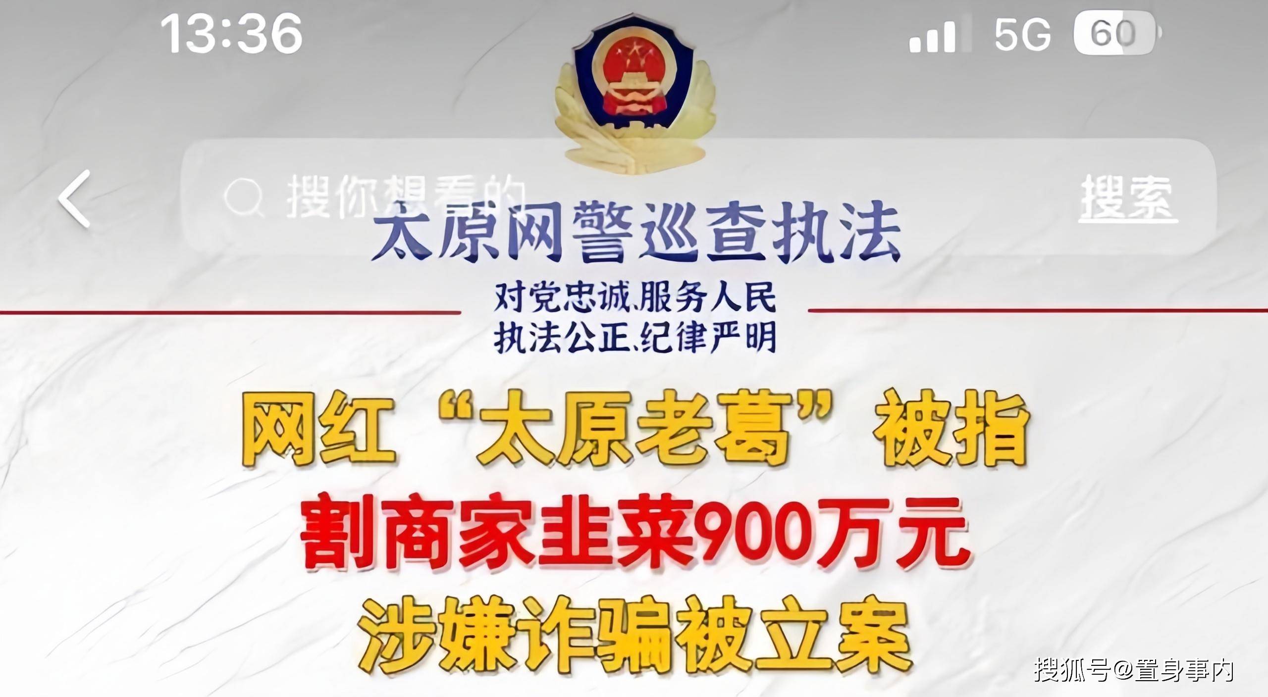 8月9日晚,抖音号“太原网警”下发消息称,网红“太原老葛”涉嫌诈骗,金额高达900万,已经被立案调查。