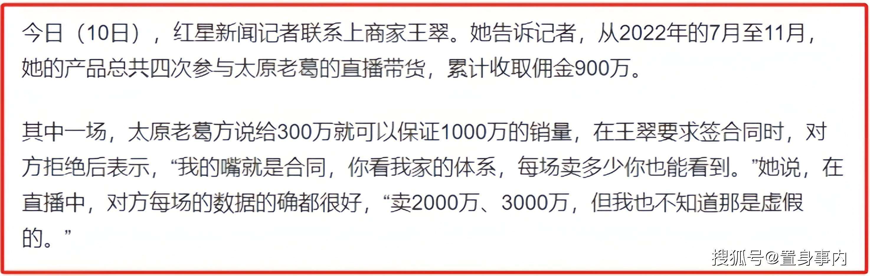 有商家报案称,“太原老葛”涉嫌诈骗自己900万元。商家当初和“太原老葛”进行了4次合作,对方收取了900万佣金。