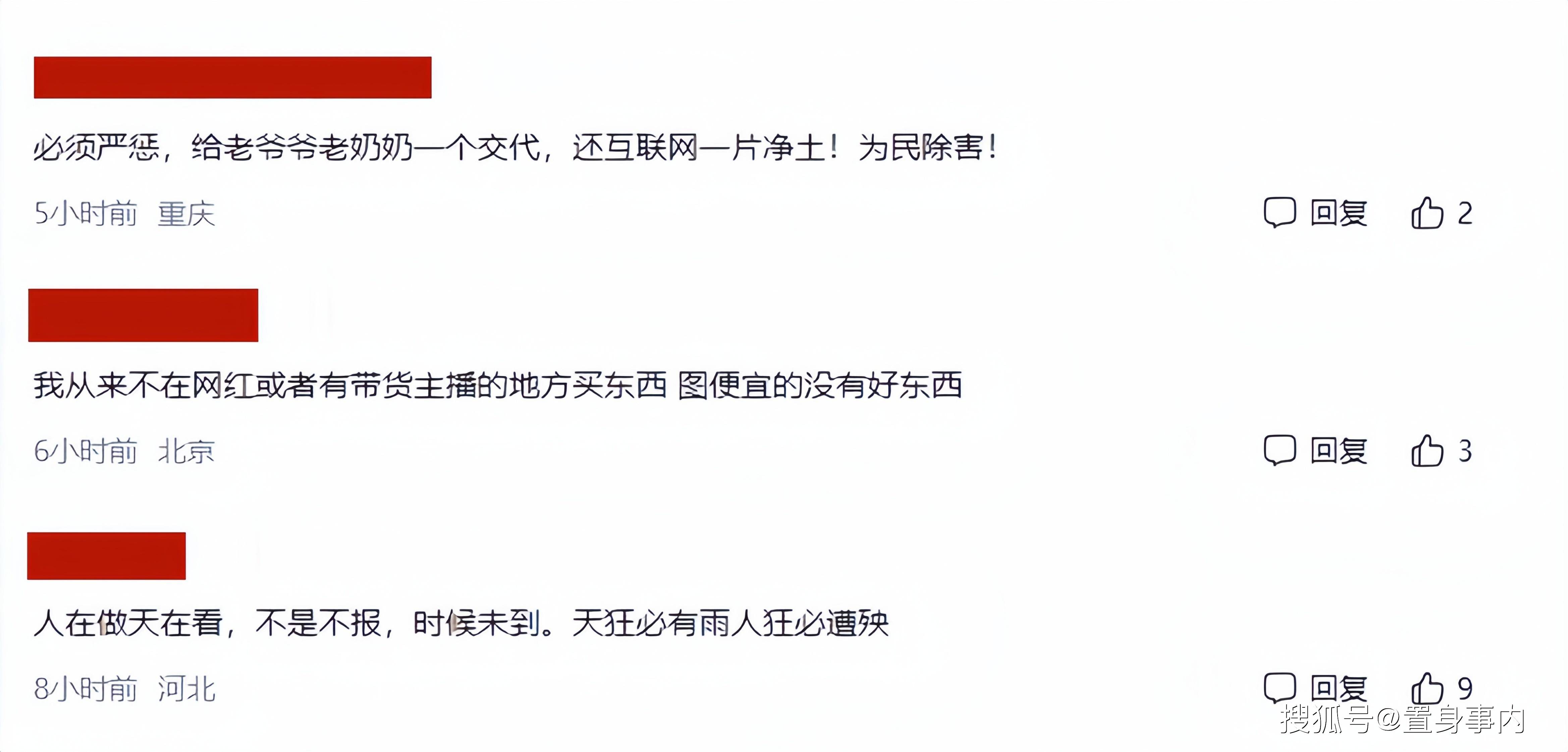 “严惩造假网红,还老年人一个干净的网络购物环境。”