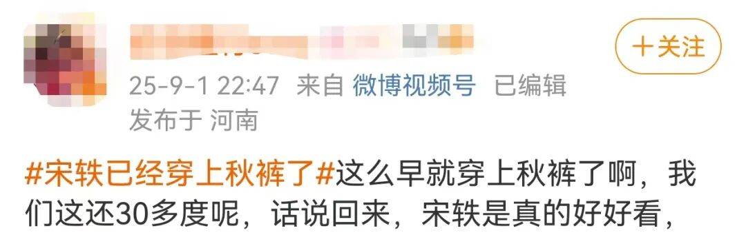对于穿秋裤,有北方网友表示,“秋天的第一个秋裤提醒是宋轶给的。”