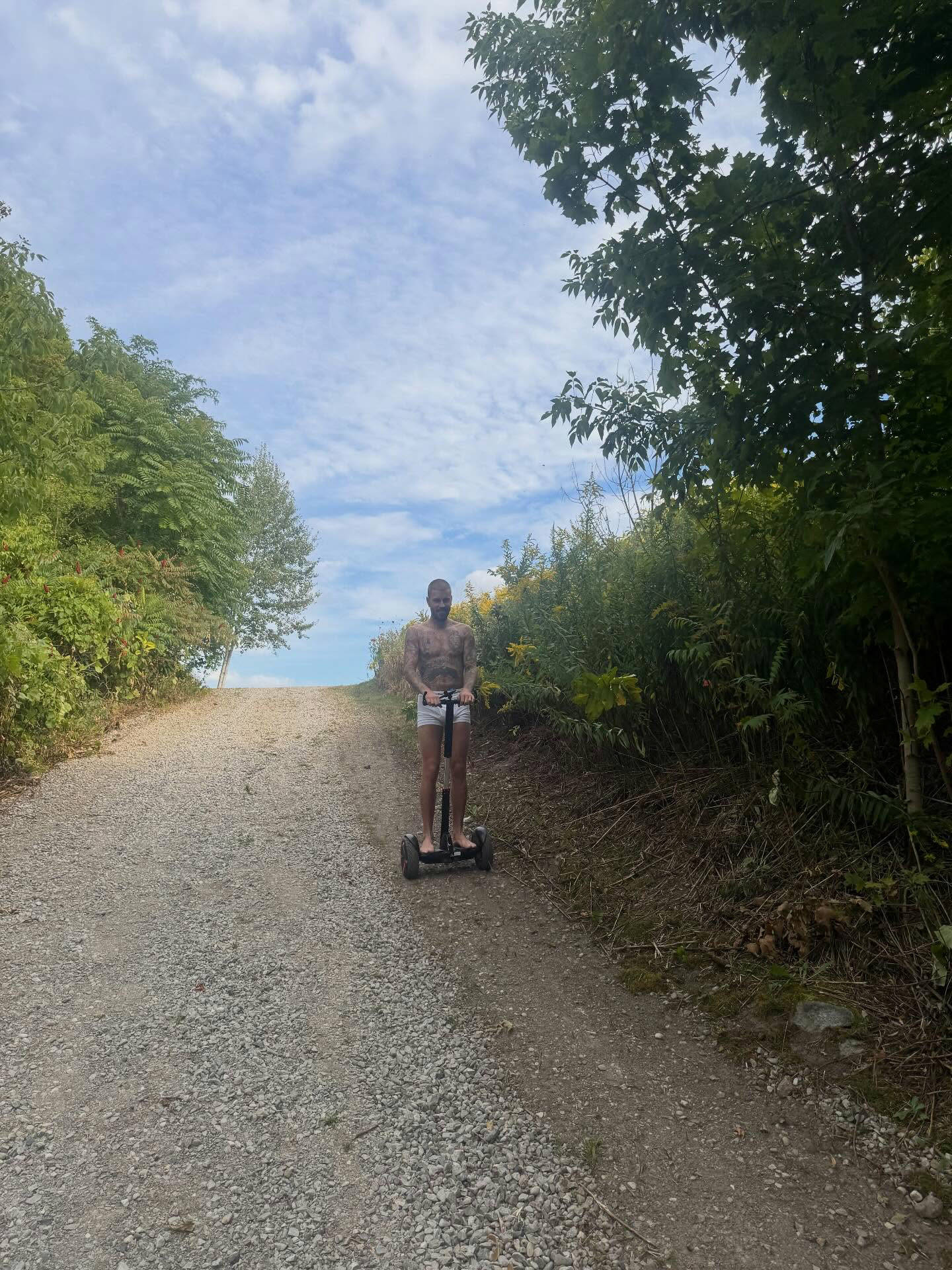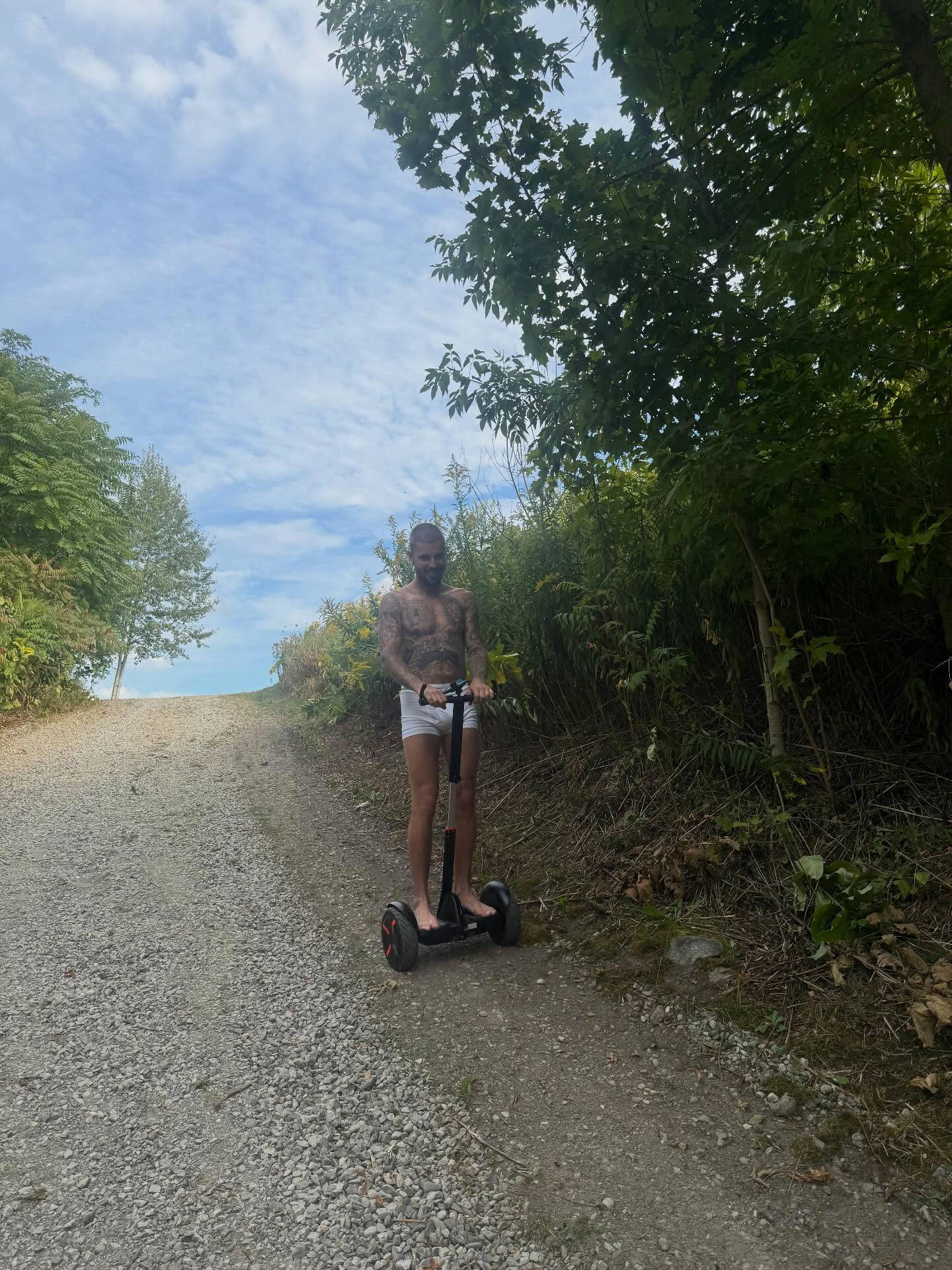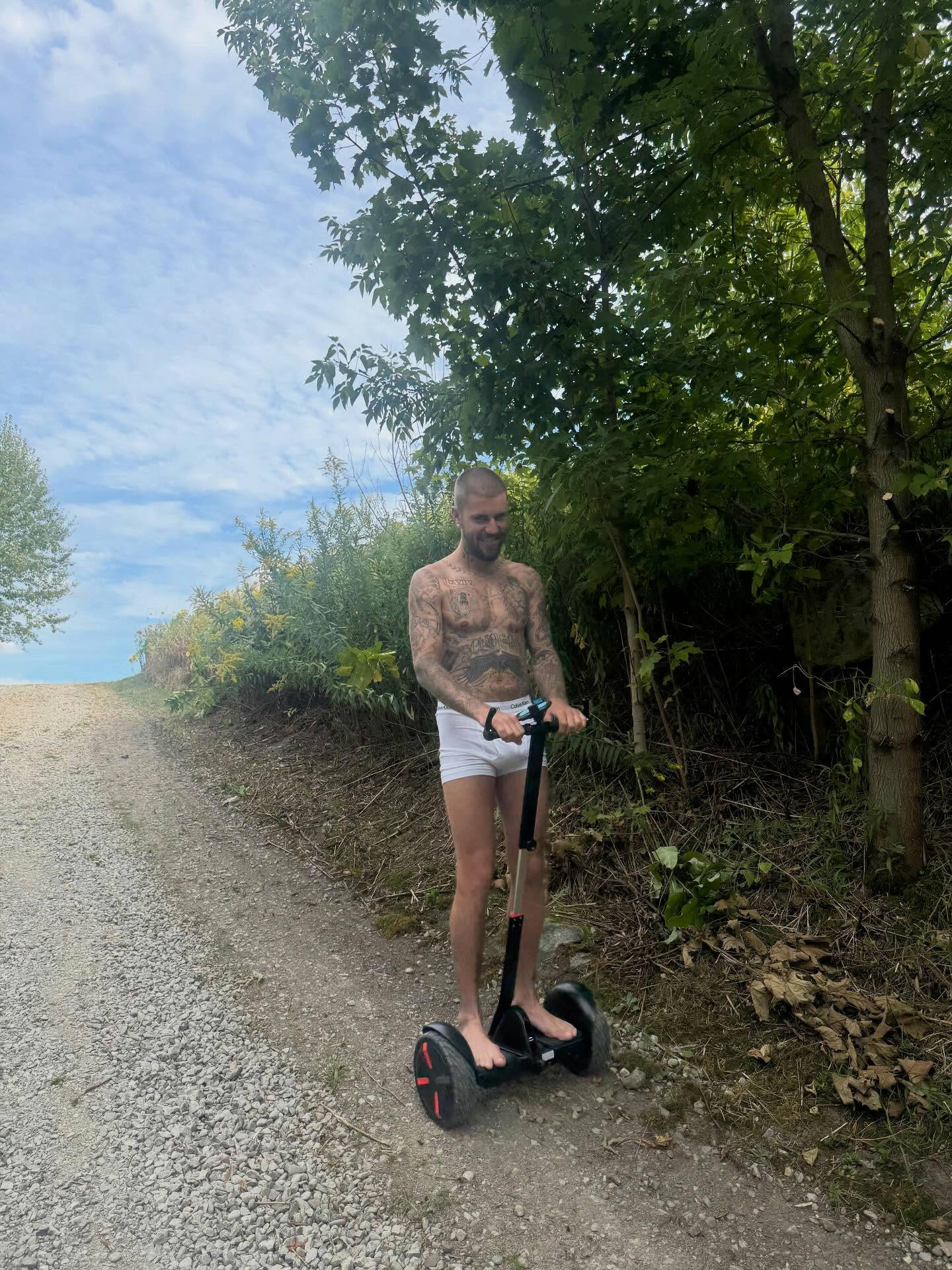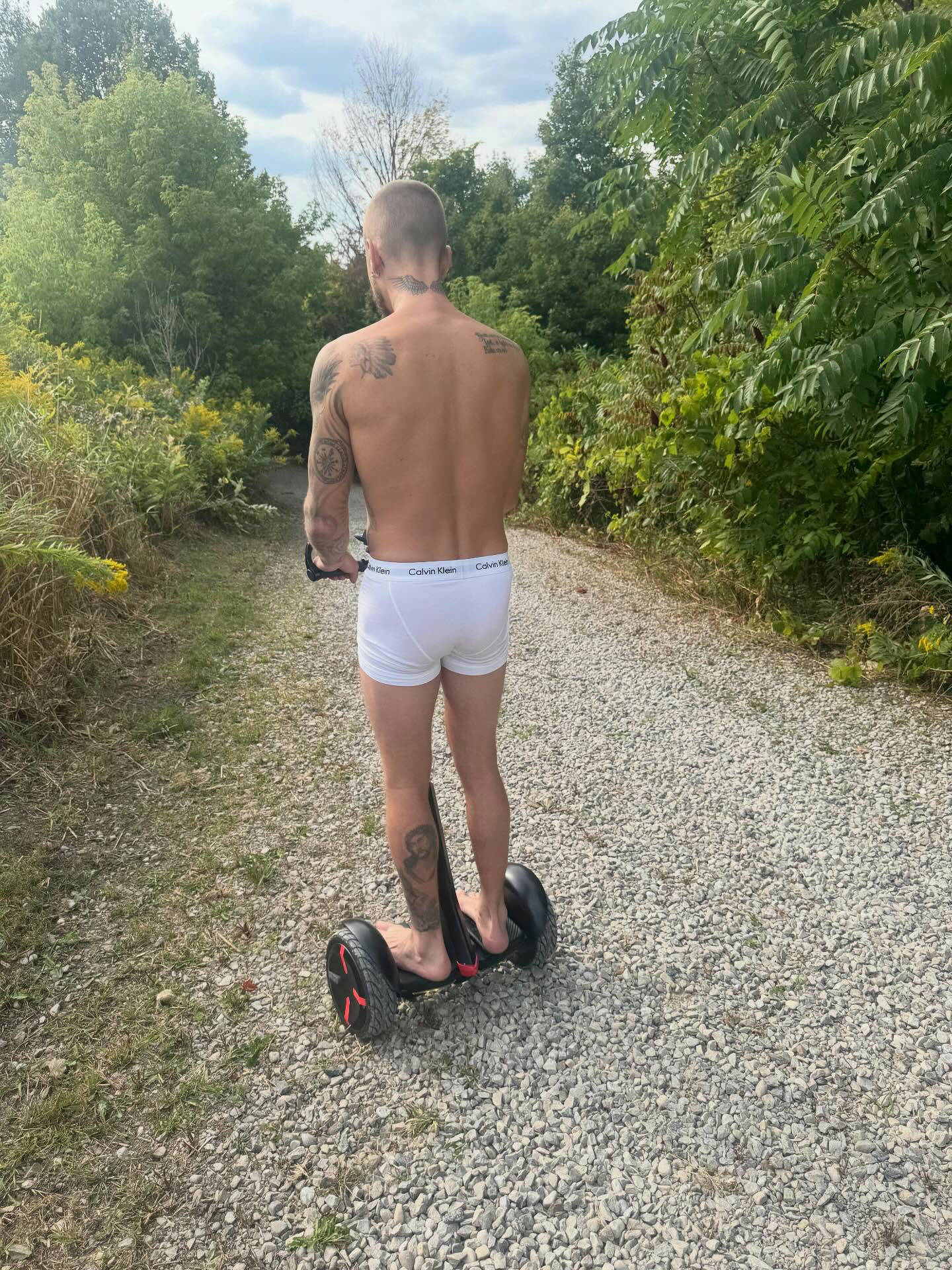 搜狐娱乐讯 近日,贾斯汀·比伯在社交平台上晒出一组照片,照片中他仅穿一条内裤,骑着平衡车在林间小道穿梭。