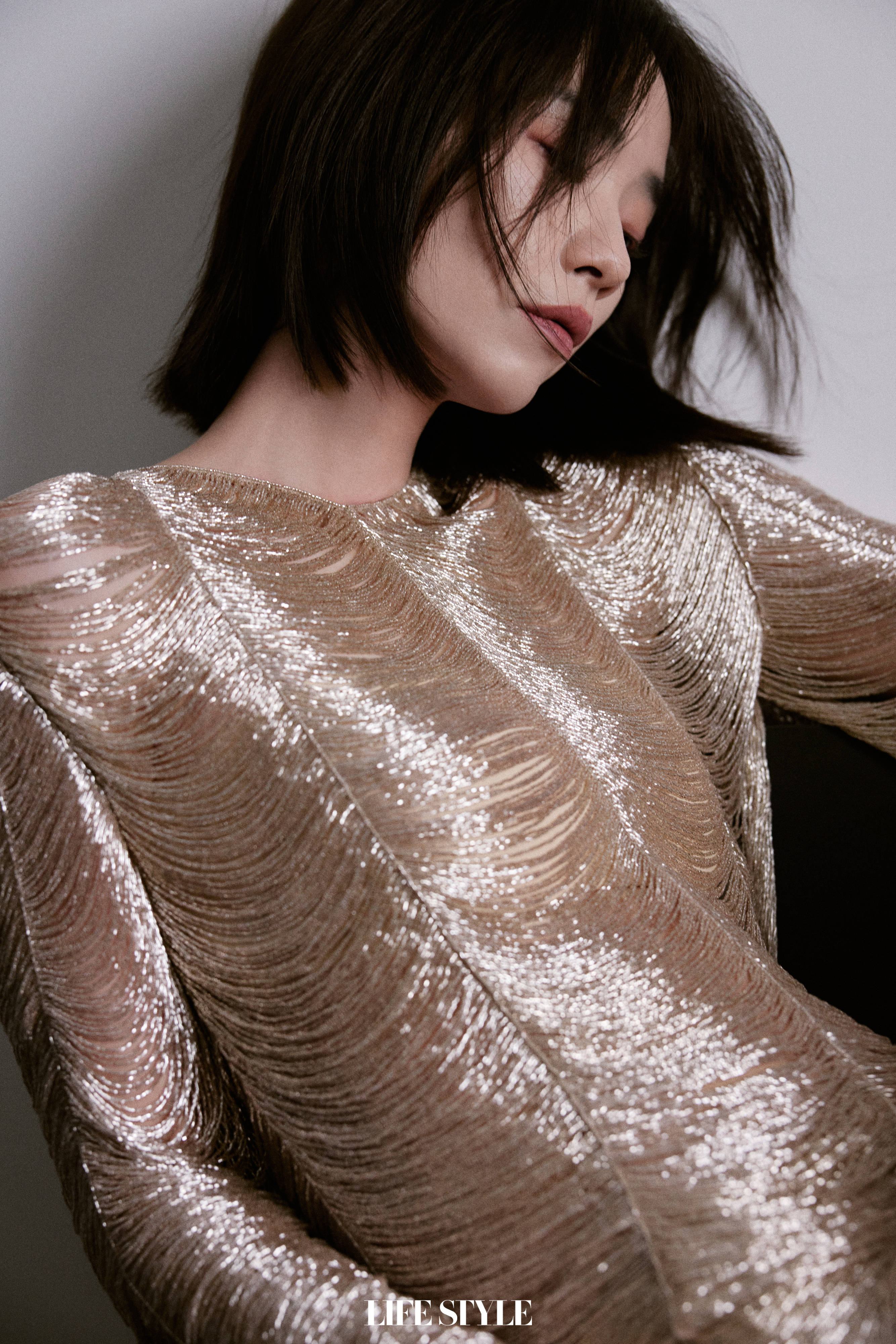 刘雅瑟穿光泽贴身连衣裙,优雅矜贵。