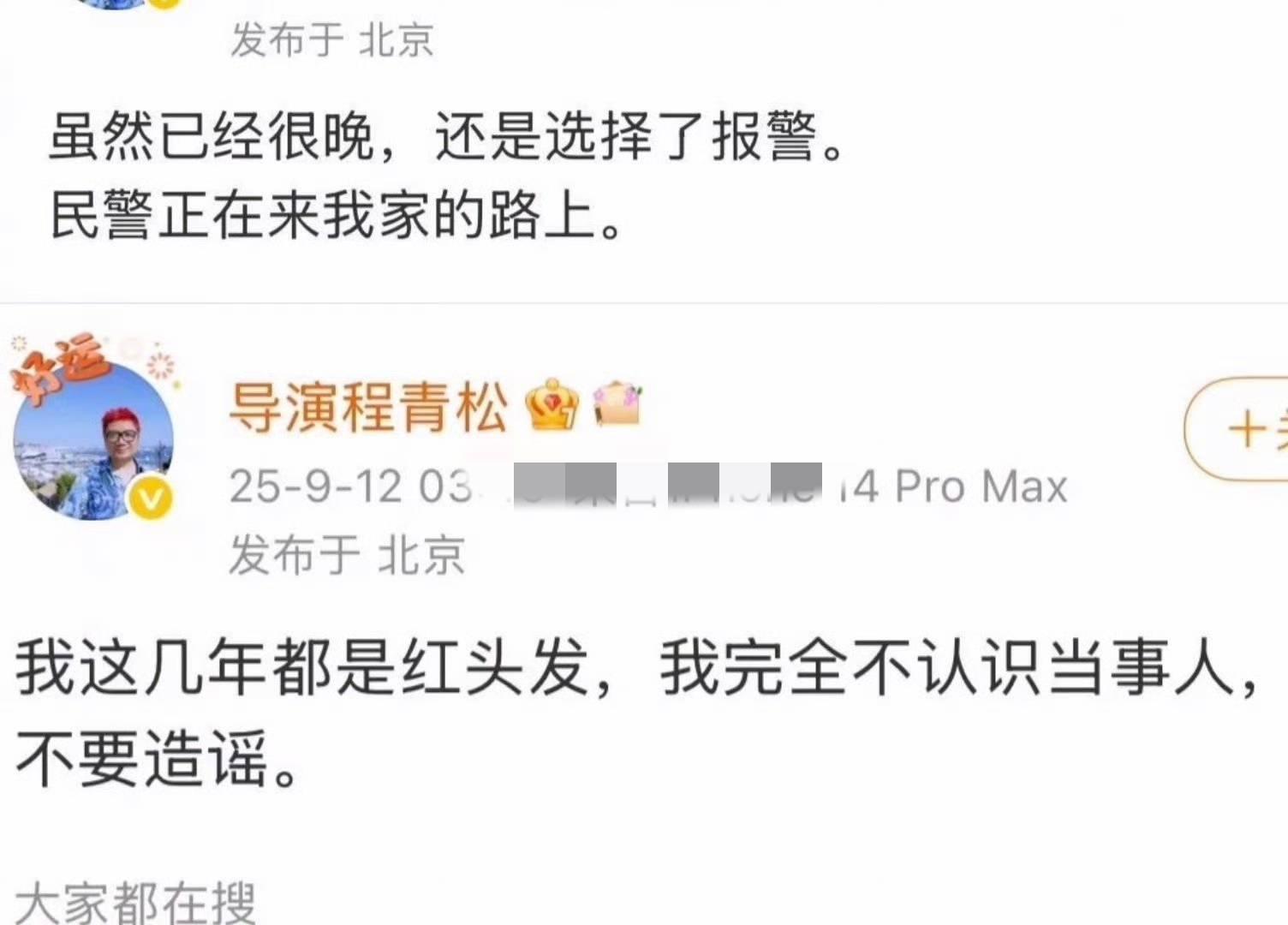 这下,话题彻底炸开了,有人扒出导演程青松的一些不堪过往,曾被曝发送暧昧短信暗示同性,更导演过同性题材的电影,九月初还曾发布对同性电影的宣传动态。