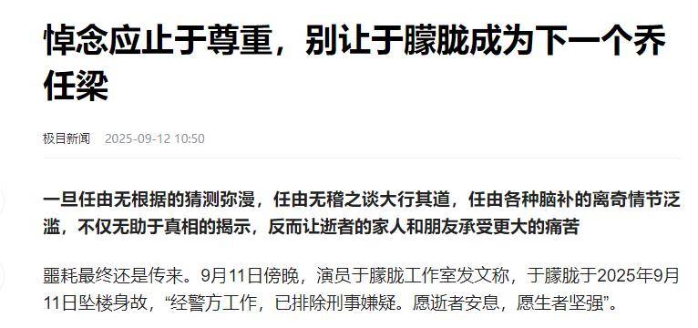 毕竟网络世界里,消息真真假假,没有得到官方确定的信息我们不要随意相信,正如官媒所说——悼念应止于尊重,别让于朦胧成为下一个乔任梁。