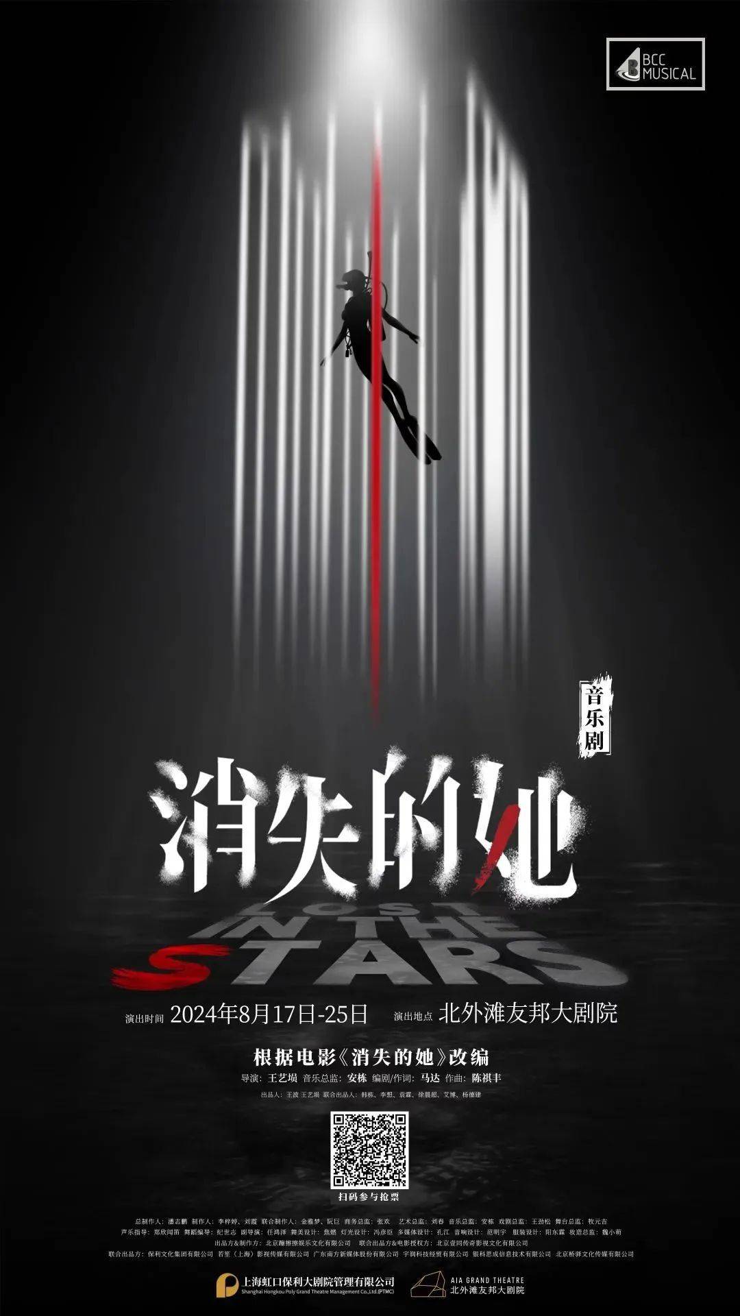 2024年8月17日至25日,由蹦擦擦娱乐出品的大型原创音乐剧《消失的她》将在北外滩友邦大剧院连演11场。这是北外滩友邦大剧院自去年9月开幕以来,为广大观众再度奉上精品优质原创音乐剧。