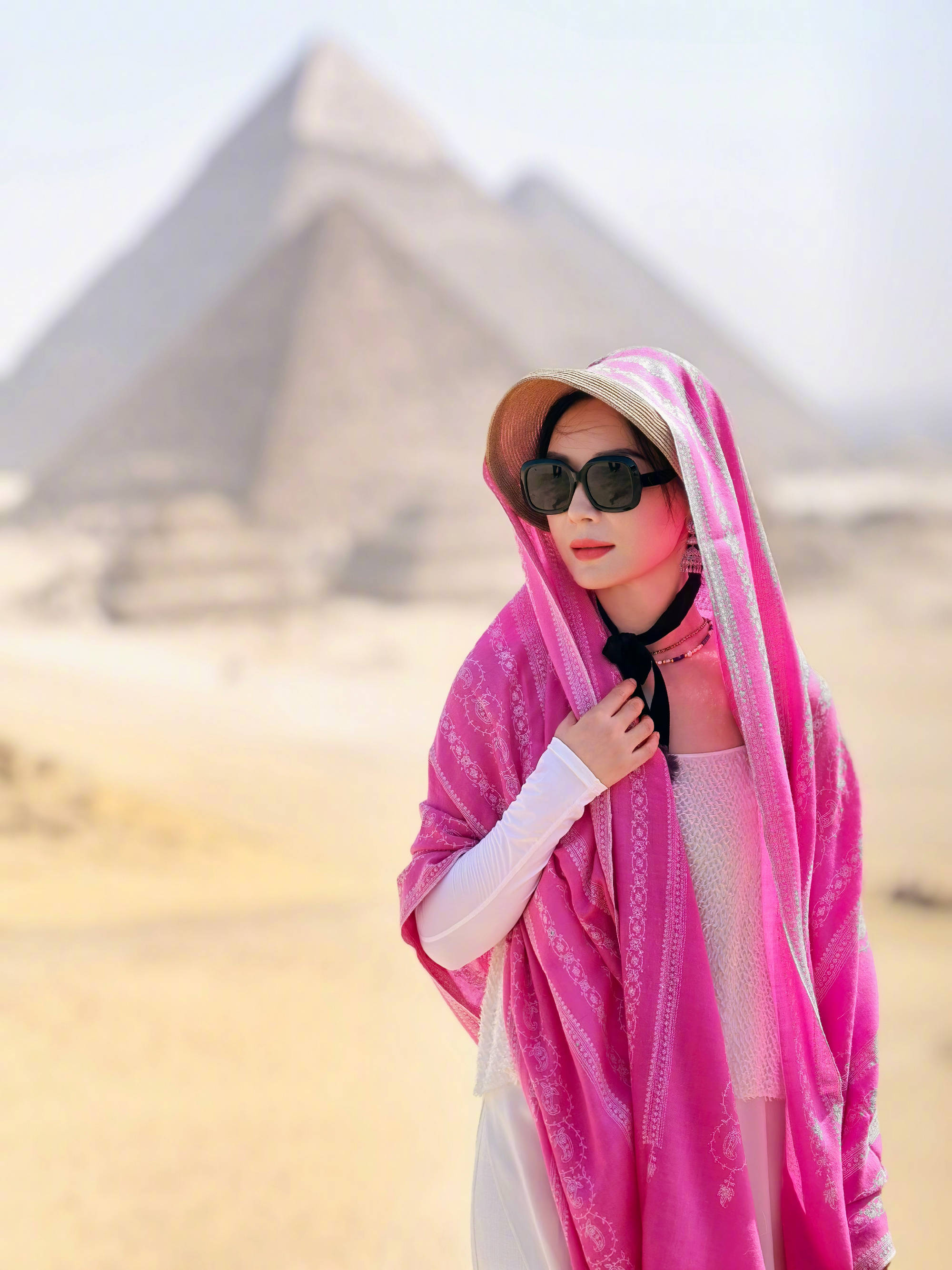 陈数发文称:“粉纱被风掀起时,恰好和金字塔碰了个面。”