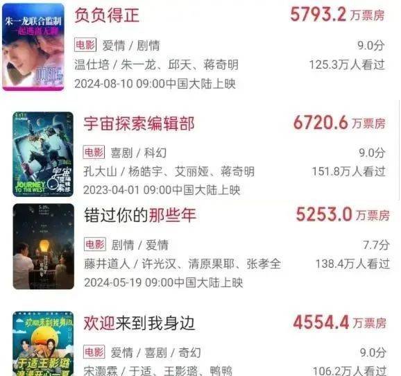 今年的爱情片,许光汉的《错过你的那些年》5000万出头,于适的《欢迎来到我身边》4000来万。