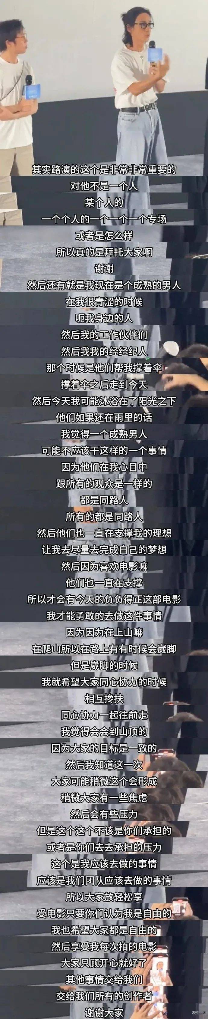 他说电影现在情况不该是粉丝去承担这些压力,上山的路难免崴脚,他应该自己承担这些。