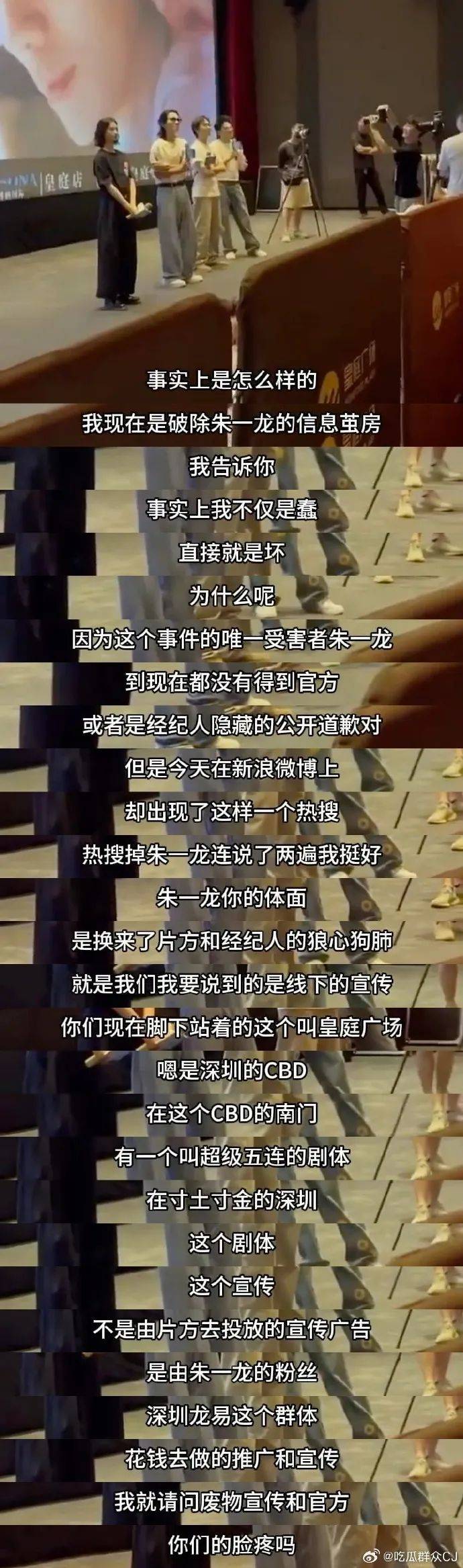 女主角和其他人员眼瞅着形势不对马上开溜,只留朱一龙一人被经纪人拦下。