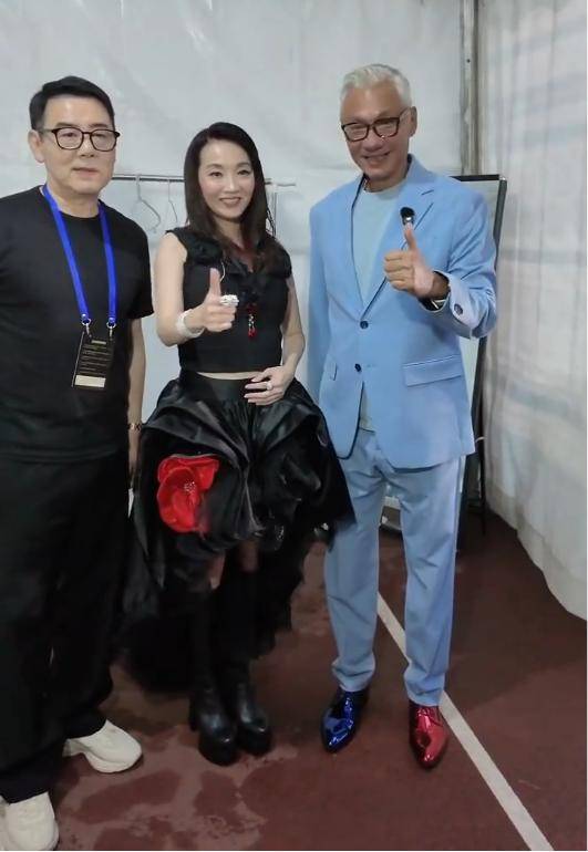 从影片中可见,许秋怡当日身穿黑色裙子,在后台正与林俊贤热聊,从影片看许秋怡当日的状态很好,一点也不像近60岁的人。