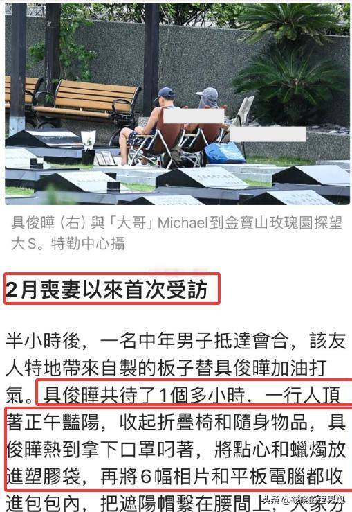 大S安葬后,具俊晔频繁陪伴在金宝山周围,常被偶遇,大家早已习以为常。