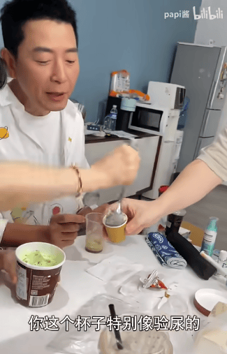 在试吃雪糕时,他看到雪糕杯形似接尿杯。