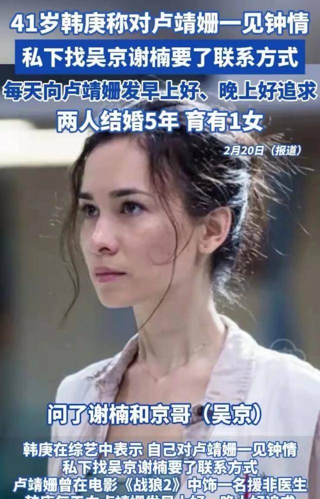 2019年6月在北京民政局低调领证,12月31日在新西兰办婚礼。2021年10月卢靖姗爸也走了,韩庚陪她回香港处理。2022年5月母亲节官宣怀孕,9月女儿出生,混血小姑娘,现在三岁多了。