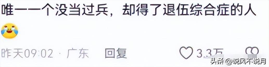 甚至还被网友嘲讽:“唯一一个没有当过兵,却得了退伍综合征的人”。