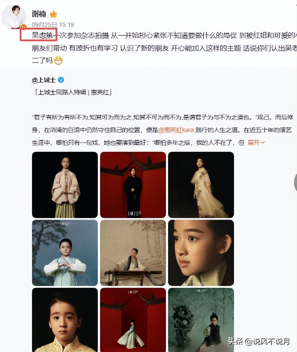9月25日,谢楠在自己的社交平台发布消息,自己的二儿子参与了杂志的拍摄。
