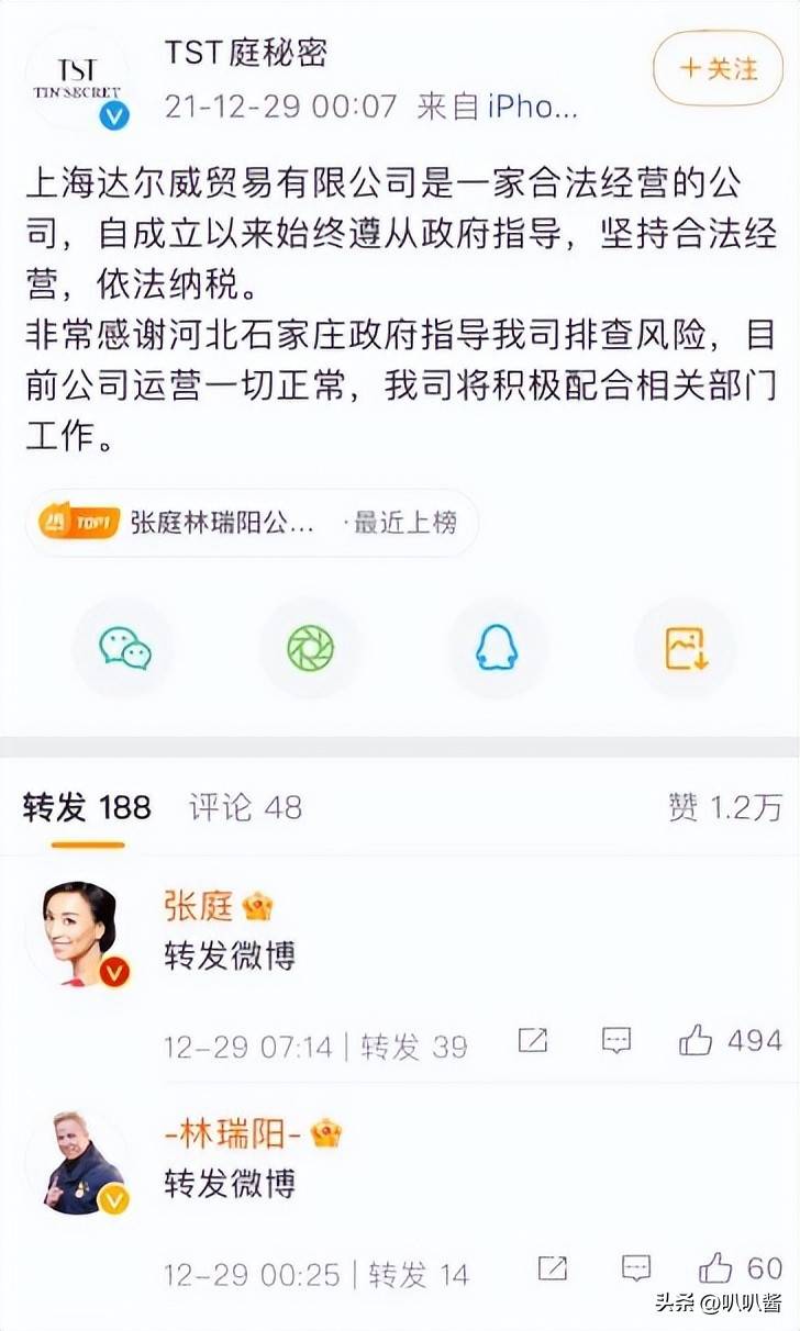 张庭夫妇公司涉嫌传销被查,而在2022年4月7日,公司被认定为传销。