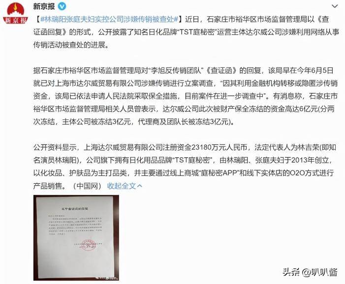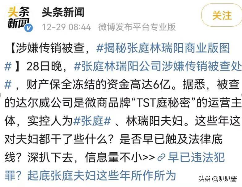 同年4月,官方发布了通知,张庭和林瑞阳创立的达尔威公司,利用舆论搞营销,产品质量不过关,两人名下的公司均遭查封,当初豪掷千金买的96套房产也被收回。