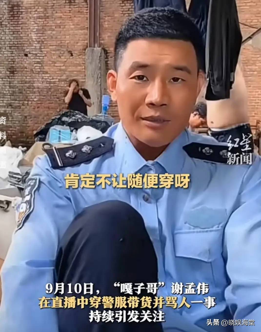 9月10日,谢孟伟在云南拍摄电影《缉毒风暴》期间,身着带有明显警用标志的服装直播带货,声称配合省厅重点项目,并在粉丝提醒时态度傲慢、口出脏话。