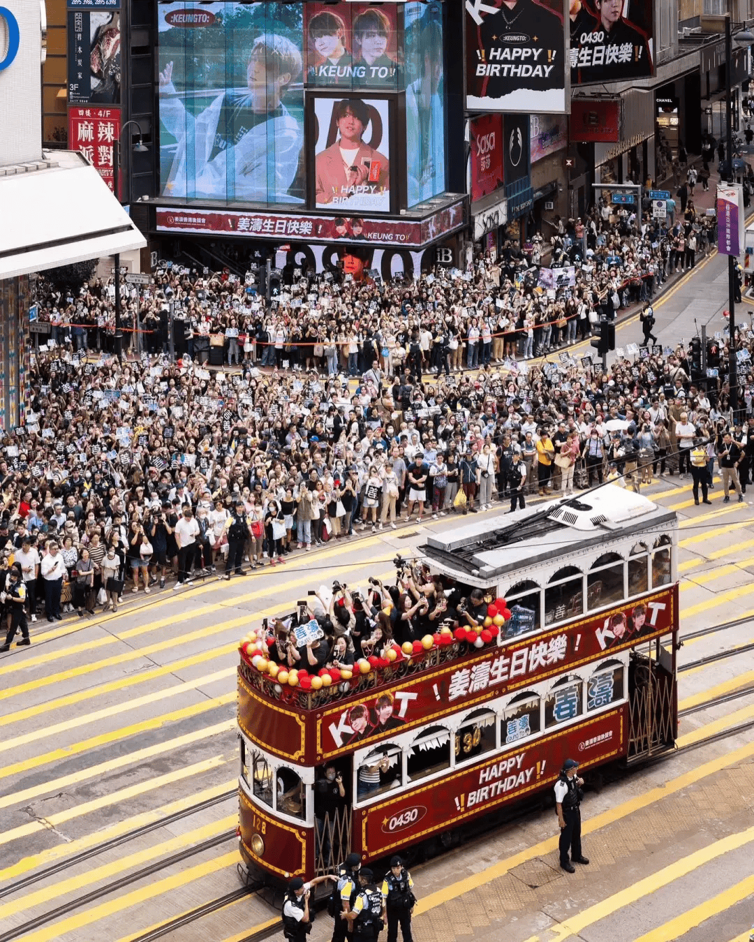 每年他4月30日的生日,香港粉丝都会自发地将铜锣湾变成姜涛湾,为他庆生。
