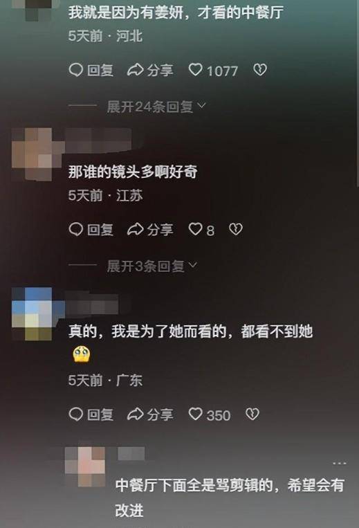 尽管姜妍在后厨里付出了无数的心血和努力,但镜头却像是有意无意地绕过了她。
