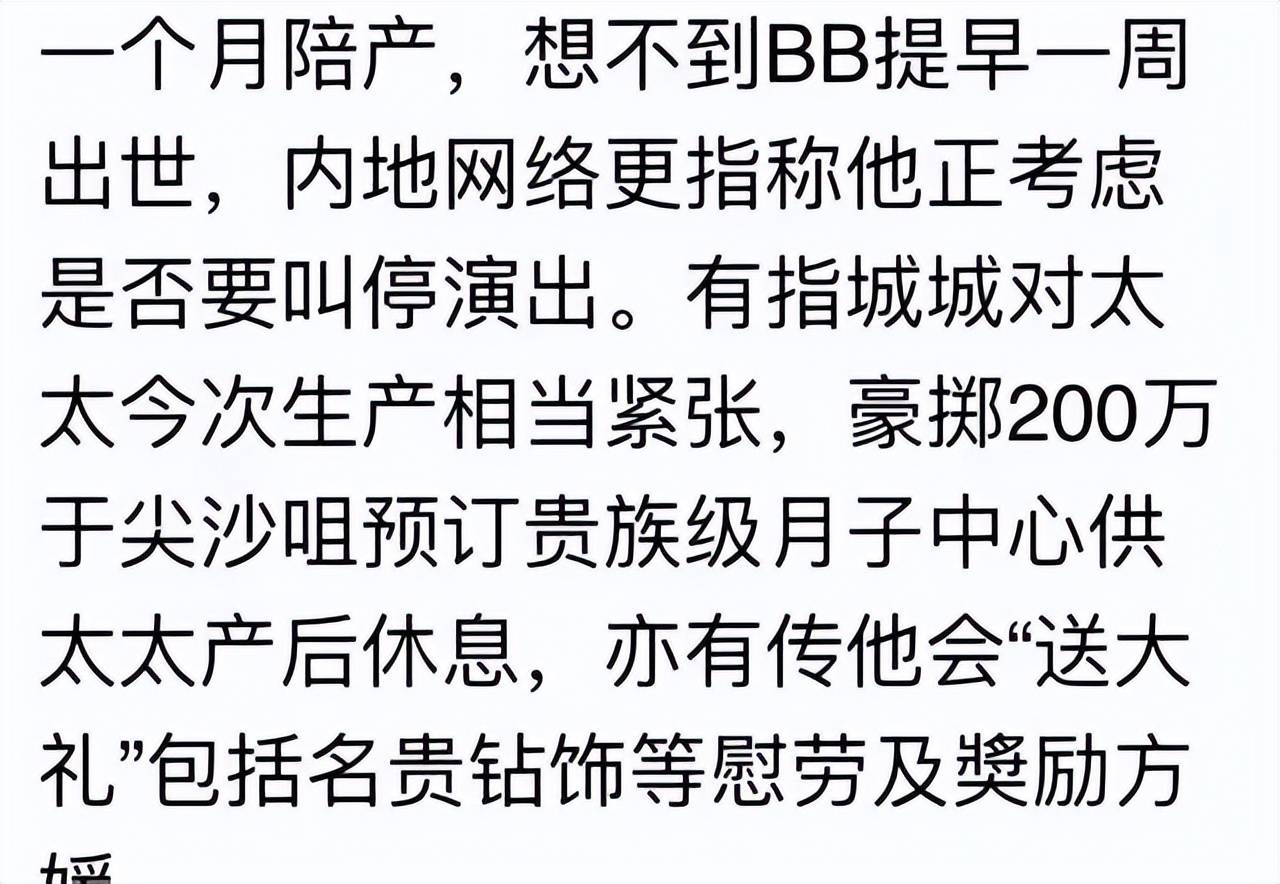 原本郭富城计划在结束了10月4号、5号的演唱会,就休陪产假的。没想到方媛早产了,演唱会会不会推迟暂时还没有公告。