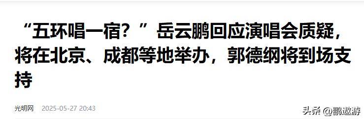 光明网(“五环唱一宿?”岳云鹏回应演唱会质疑,将在北京、成都等地举办,郭德纲将到场支持 2025.5.27)