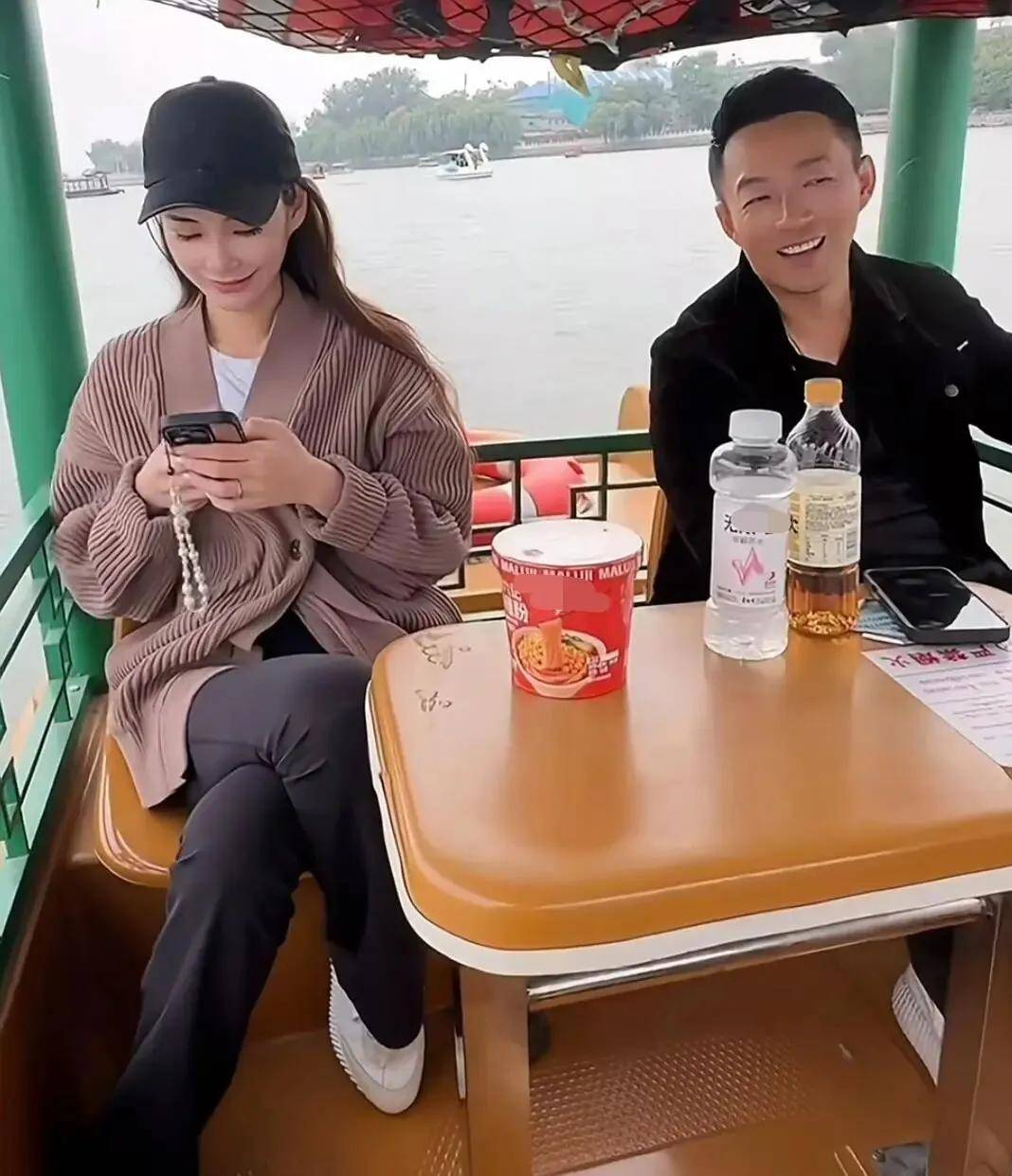 两个人坐在船上,还拿出了他们的产品。果然,汪总不管走到哪里,都不忘带货啊。