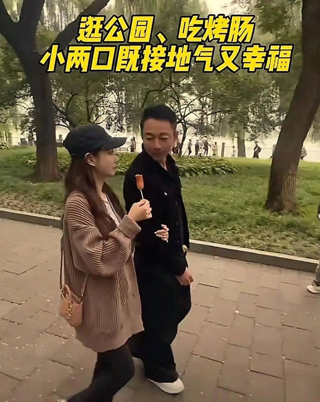 两个人同吃一个烤肠,由此可见,两人的关系还是很稳定的,在我看来,如果你不是非常喜欢一个人,别人咬过的东西,你肯定不会动的。