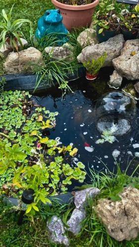 池塘里养着多条小鱼儿,鱼儿在水中嬉戏,边上更有一只石雕青蛙和休闲长凳。这种园艺的搭配确实使人心旷神怡,难怪杜丽莎虽然快年过七旬,看上去也相当减龄。相信这种生活环境为她提供了不错情绪价值,让她减少生活的烦恼!