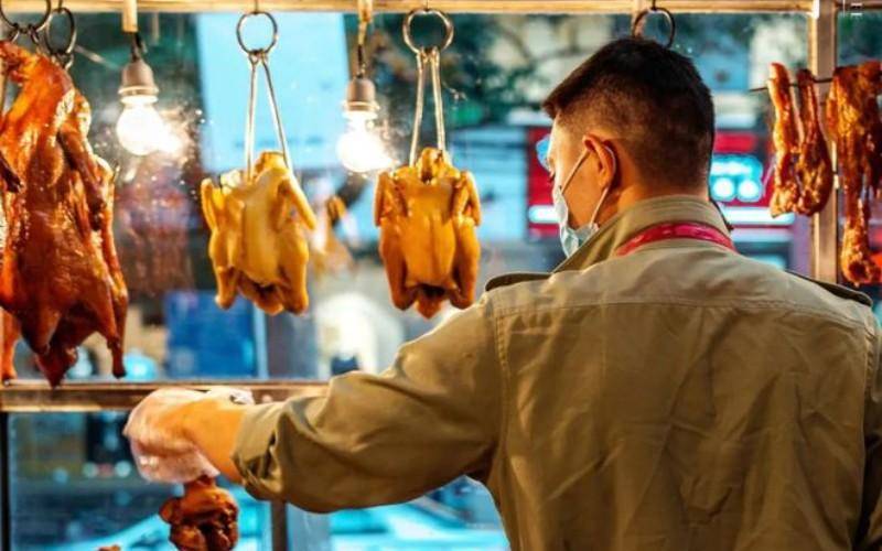 事发当天,周晟成上晚班,九点多的时候,陈益民走到柜台前面,指着架子上的烧鸡说:“给我来一只鸡,剁碎。”