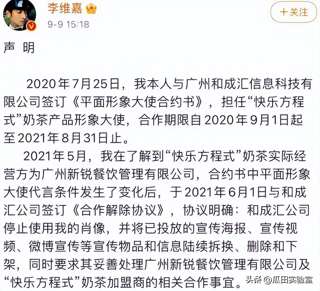 雪上加霜的是,他代言的奶茶品牌发生质量问题,加盟商的抗议声与网友的指责一度把他推向风口浪尖。即便事后澄清自己早已解约,但外界的质疑仍然如影随形。