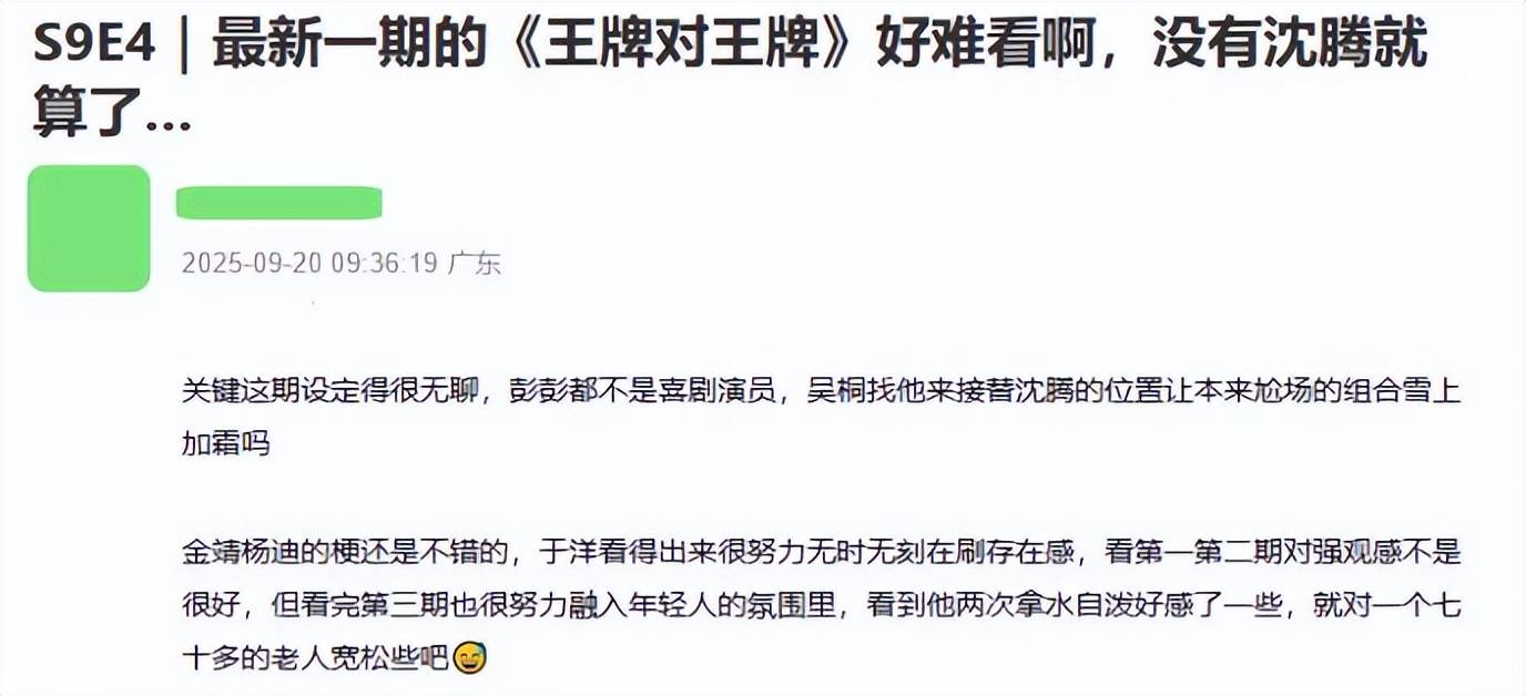 有他在,哪怕贾玲缺席,也能稳住热度,但等到沈腾也跟着退出,节目立马就被“打回原形”了,最新一期《王牌9》的收视率居然仅有0.02%,豆瓣一片吐槽声,可以说是 “既不叫好,也不叫座”,太惨了。
