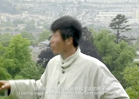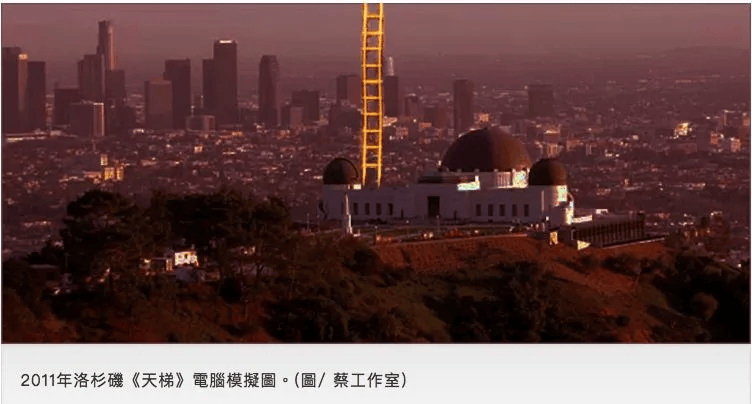 当然最著名还是他的代表作《天梯》,蔡国强的设想是从地面一路炸到天空,意义是“连接地球和宇宙的梯子”。