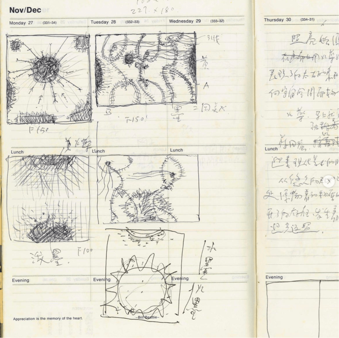 从蔡国强1978年的日记里就能明显看到,“大爆炸”“宇宙”等关键词就是他毕生追求的艺术目标。