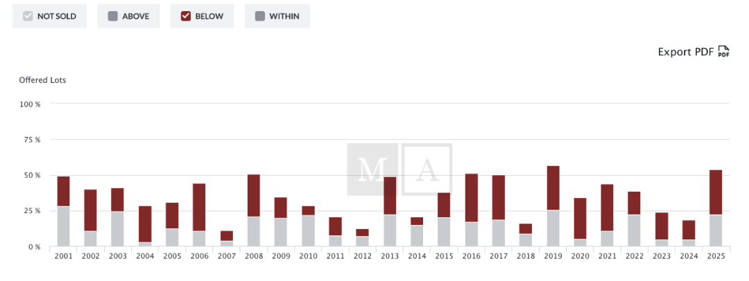 和股市一样,拍卖市场是公开的。每一次流拍,每一次低于预期的成交,都在向全世界的藏家传递一个冰冷的信号: