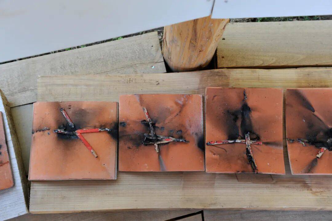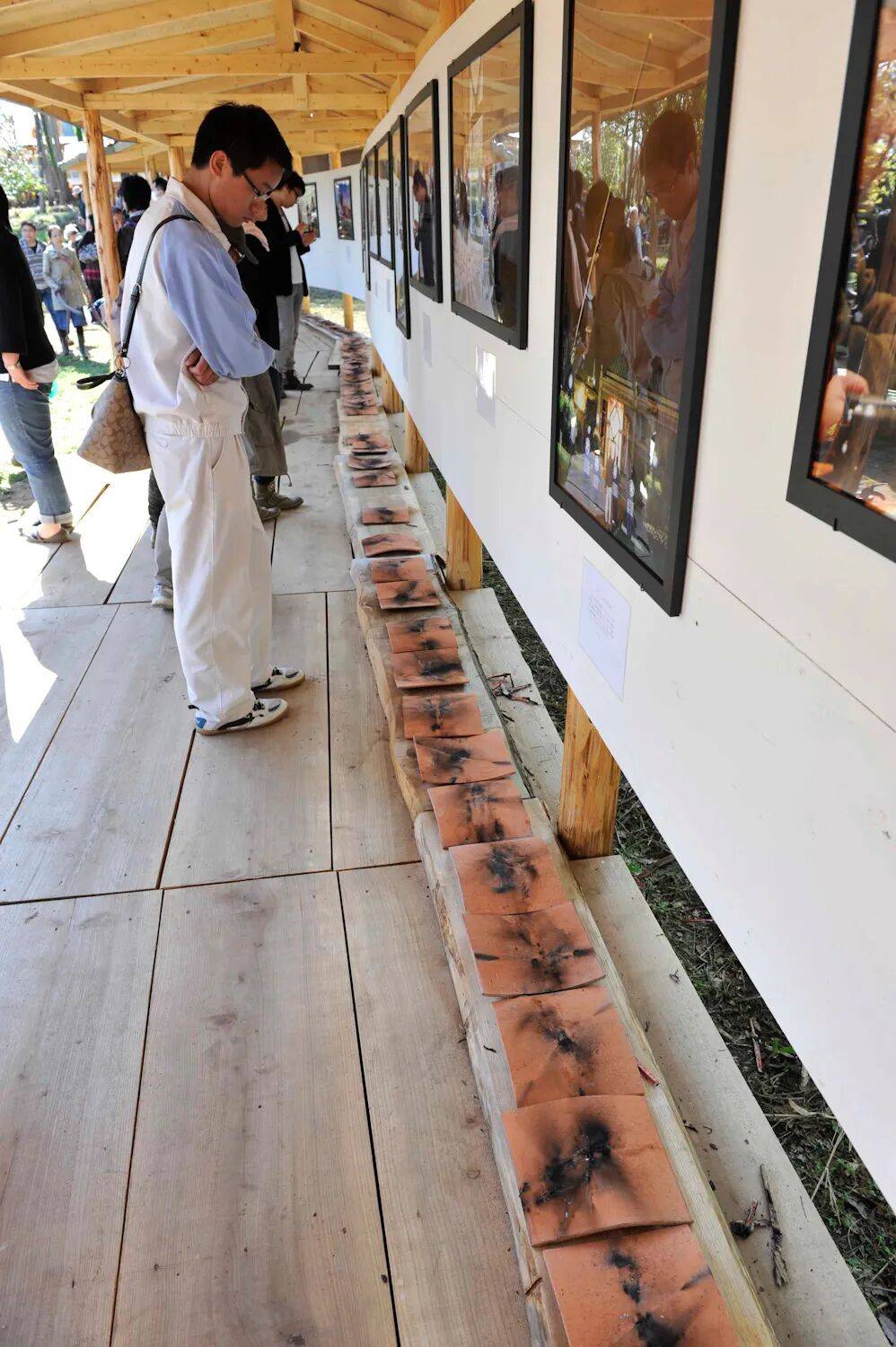 作品点燃后,陶瓷瓦片作为作品的一部分,供到访者参观,如上图。以上图片来源@caiguoqiang.com