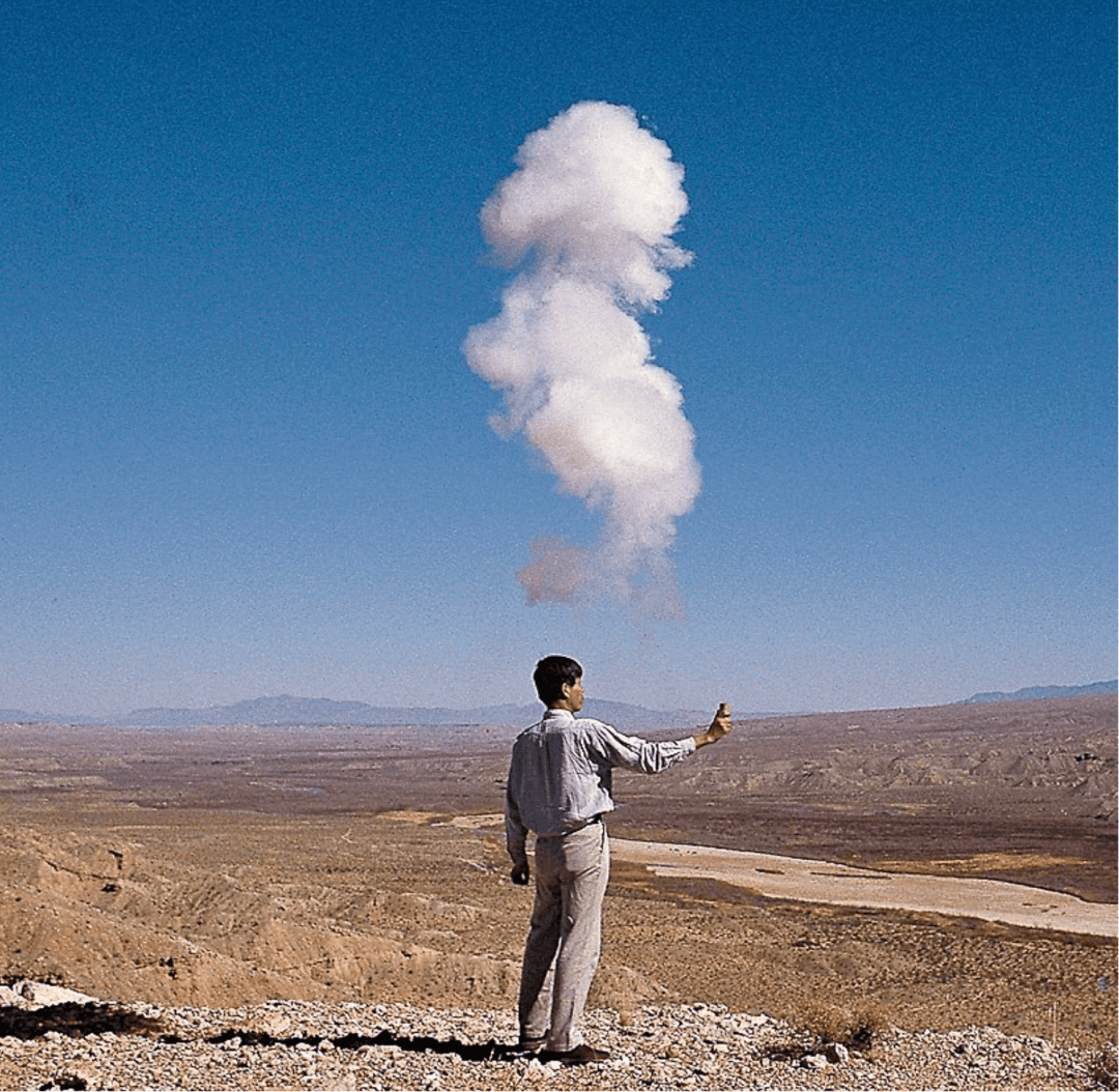 1993年,蔡国强在中国嘉峪关搞爆炸。作品名《外星人计划10号:为万里长城增一万米》。