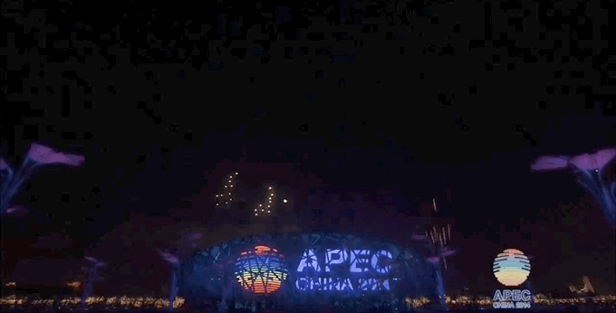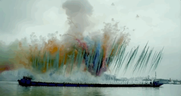 APEC峰会烟火,比较接近大众审美,并没有那么强烈的“蔡国强”风格。