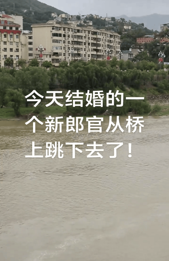 上午十一点左右,新郎走到旬河大桥。他身穿婚礼服装,被人看见直接翻过护栏跳进了河里。目击者说,河水很急,他跳下去后只冒了一下头,就被冲出去几十米,很快就再也看不到人了。