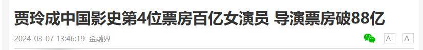信息来源金融界2024-03-07贾玲成中国影史第4位票房百亿女演员 导演票房破88亿